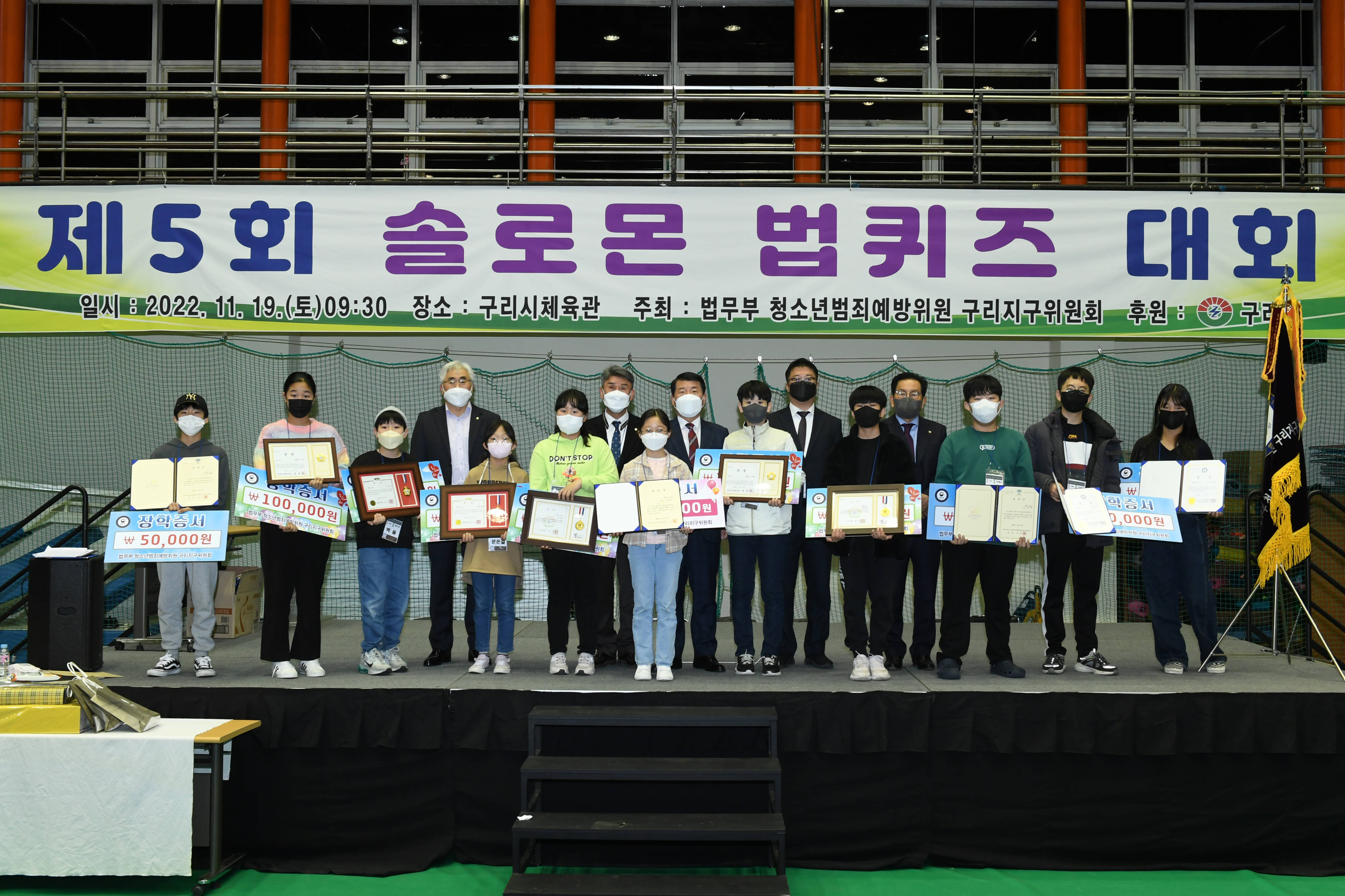 □ 구리시(시장 백경현)에서는 지난 19일 구리시 실내체육관에서 법무부 청소년범죄예방위원 구리지구위원회(회장 이한윤) 주관으로 ‘제5회 솔로몬 법퀴즈대회’를 개최했다고 밝혔다.