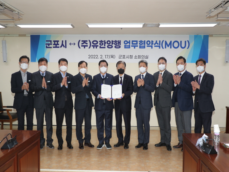 군포시와 유한양행은 2월 17일 오전 군포시청에서 ‘유한양행 바이오연구소 및 부설 CMC센터 건립사업’ 추진을 위한 업무협약을 체결했다.