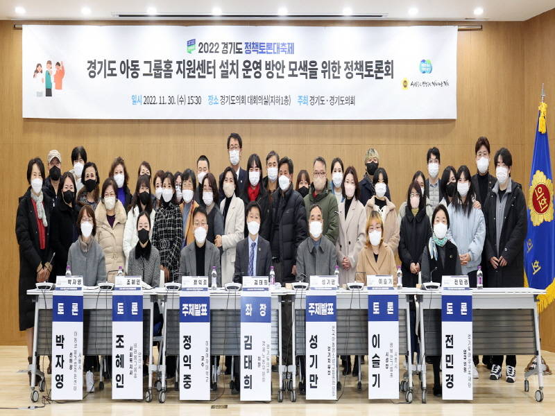 경기도의회 경제노동위원회 김태희 위원(더불어민주당, 안산2)이 좌장을 맡은「경기도 아동 그룹홈 지원센터 설치 운영 방안 모색을 위한 정책토론회」가 11월 30일(수) 경기도의회 대회의실에서 개최됐다. 경기도와 경기도의회가 공동으로 주최하는 ‘2022 경기도 정책토론대축제’의 일환으로 열린 이번 토론회는 도내 160개소, 전국의 1/3 수준에 달하는 경기도 아동 그룹홈의 현황을 파악하고, 그에 따른 지원센터 설치 및 운영 방안을 모색하기 위해 개최됐다.