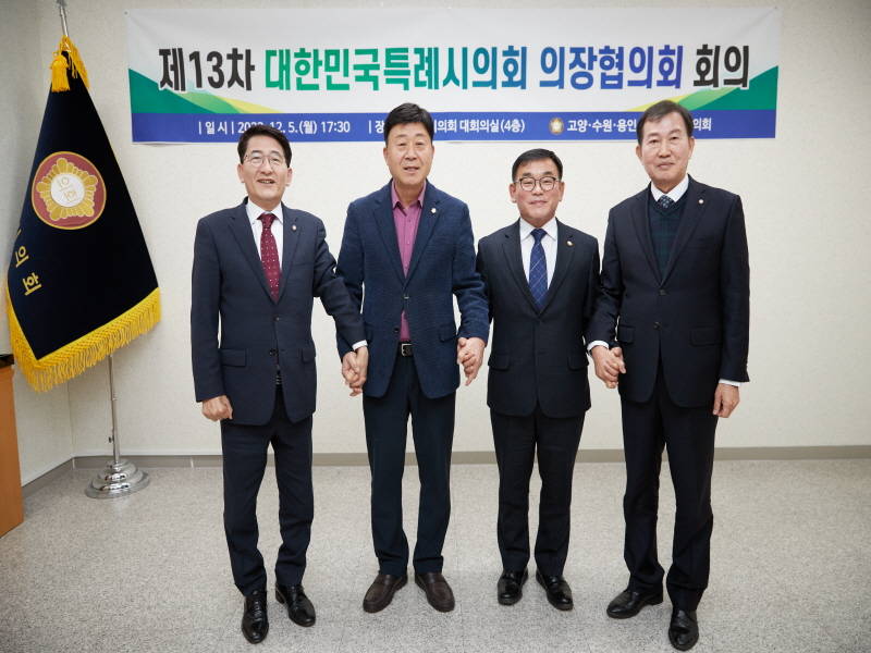 이날 회의에는 김영식 고양시의회 의장, 김기정 수원시의회 의장, 윤원균 용인시의회 의장, 김이근 창원시의회 의장이 참석해 특례시의회 조직·정원 확대 등 특례시의회 권한 확보를 위한 방안을 논의했다.