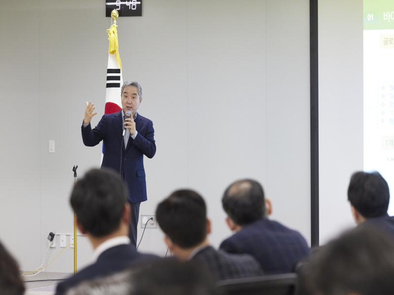 강연자인 이승규 한국바이오협회 부회장은 과학기술정보통신부 ‘R&D(연구개발) 투자 혁신자문단’ 자문위원 등을 지낸 바이오 전문가다. 이승규 부회장은 바이오 산업의 개념·특성부터 국내외 산업 동향을 설명한 후 대한민국을 ‘바이오 스타’로 만들기 위한 경기도의 9대 과제를 제시했다.