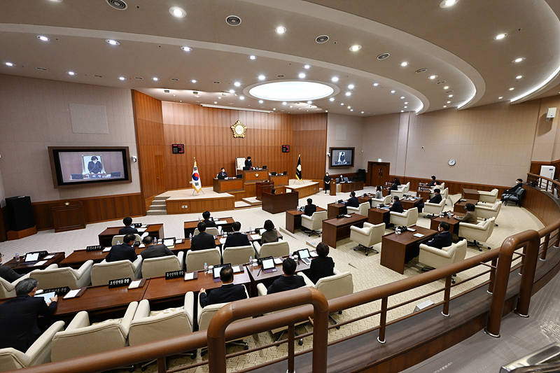 이날 5분 자유발언에는 정미영·권안나·김현채·김연균 의원이 나섰으며, 이어 조세일 의원이 ‘송양유치원 옆 지식산업센터 사업’에 대해 시정질문을 했다.