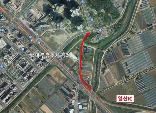 일산동구 백석동 448-14번지 일원에 연결로를 설치하고 하부 도로 1개 차로 400m를 신설했다.