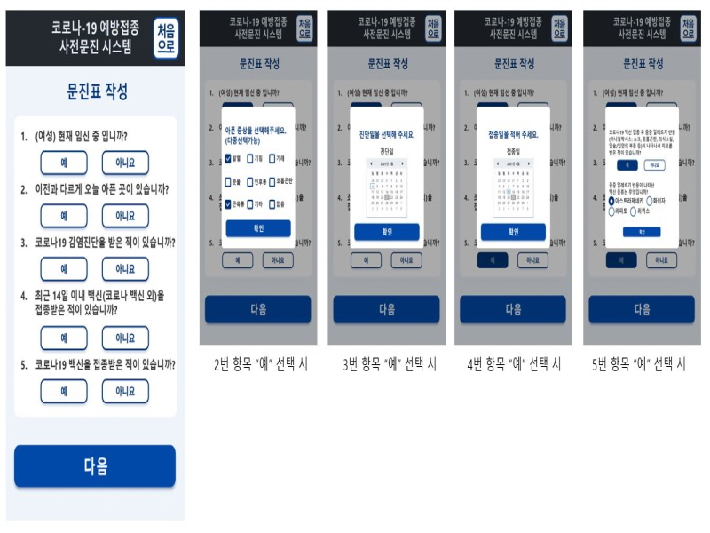 특히 ‘아픈 증상’이나 ‘백신 접종 후 알레르기 반응’ 등 직접 작성해야 하는 문항은 ‘발열’, ‘기침’, ‘가래’ 또는 ‘아스트라제네카’, ’화이자‘ 등 구체적인 증상이나 약품 등을 명시해 선택(다중선택 가능) 할 수 있도록 했다.