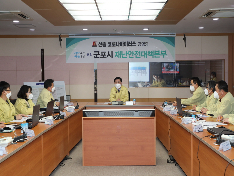 * 사진 : 한대희 시장(가운데)이 코로나19 관련 긴급 대책회의를 주재하고 있다.