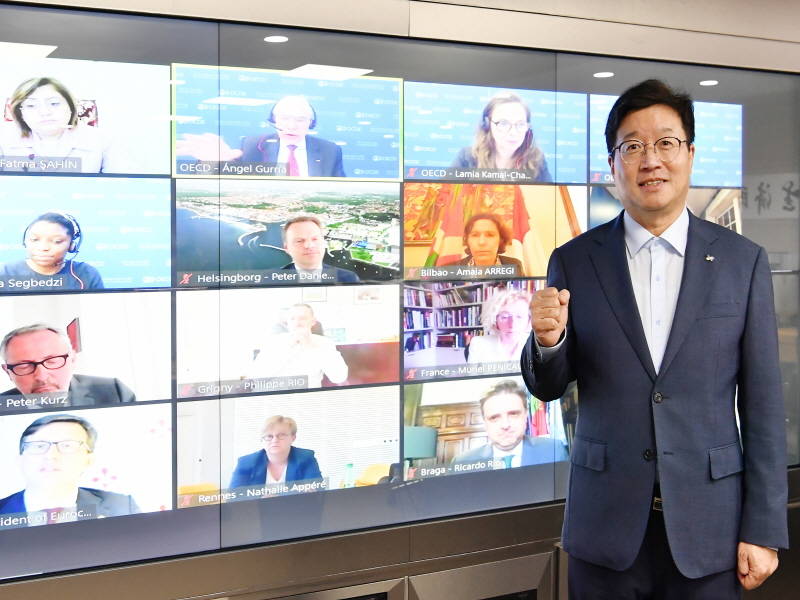 앙헬 구리아(Angel Gurria) OECD(경제협력개발기구) 사무총장의 환영사로 시작된 이날 챔피언 시장 연합회의는 연합회장인 안 이달고(Anne Hidalgo) 프랑스 파리시장, 회원도시 시장이 참여한 세션으로 이어졌다. 20개 회원도시 대표가 실시간 화상회의로, 8개 도시 대표는 녹화영상으로 참여했다.