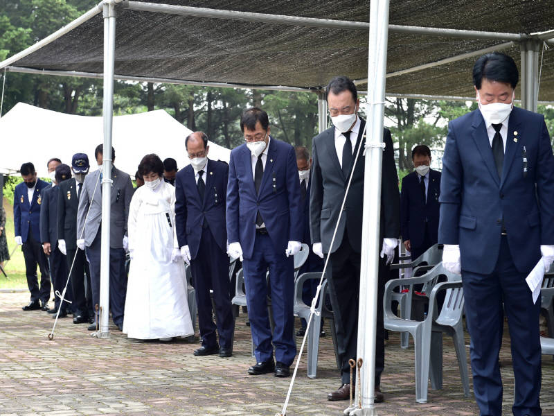 금번 추념식 행사는 코로나19 감염 및 확산방지를 위해 참석대상을 최소화 하였고, 추념식 참석자에 대한 체온측정, 손소독, 마스크 착용과 좌석 간 거리두기 등 철저한 방역지침을 준수하여 시행했다.