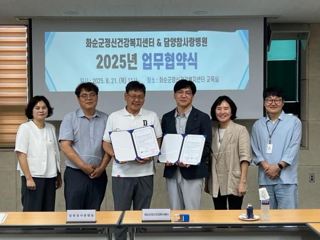 한방통신사 신다은기자 기자 | 화순군은 보은병원에 위탁 운영 중인 화순군 정신건강복지센터에서 화순군민의 통합적이고 체계적인 정신건강 서비스 제공을 위해 지난 21일 담양참사랑병원(원장 최재형)과 업무협약을 체결했다고 밝혔다.