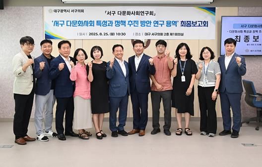 한방통신사 신태공 기자 | 대구 서구의회 의원연구단체인 '서구 다문화사회연구회'는 8월 25일 서구의회 2층 제1회의실에서 ‘서구 다문화사회 특성과 정책 추진 방안 연구 용역’최종보고회를 개최했다.