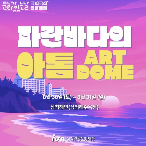 한방통신사 양호선기자 기자 | 삼척관광문화재단은 8월 30일부터 31일까지 오후 5시부터 9시까지 삼척시 갈천동 삼척해변 일원에서 시민과 관광객을 대상으로 '문화가 있는 날, 구석구석 문화배달 - 파란 바다의 아톰(ART DOME)' 프로그램을 운영한다.