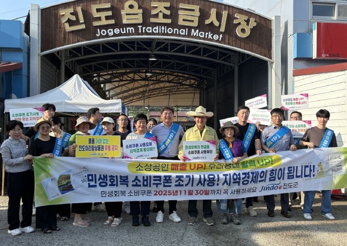 이번 캠페인에는 김희수 진도군수와 한국외식업중앙회 진도군지부, 진도군소상공인연합회 등 약 50명이 참여해 민생회복 소비쿠폰의 조기 사용과 전통시장 이용을 적극 독려했다.
