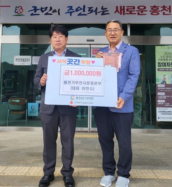 전영길 서석면장은 “지역 사랑을 실천해 주신 홍천기부천사운동본부에 깊이 감사드린다”라며, “기탁해 주신 성금은 꼭 필요한 이웃에게 소중히 전달하겠다”라고 전했다.