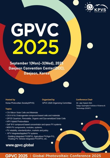 한방통신사 신태공 기자 | 대전시와 한국태양광발전학회가 공동 주최한 ‘2025 글로벌태양광학술대회(GPVC 2025)’가 9월 1일부터 3일까지 대전컨벤션센터(DCC)에서 열린다.