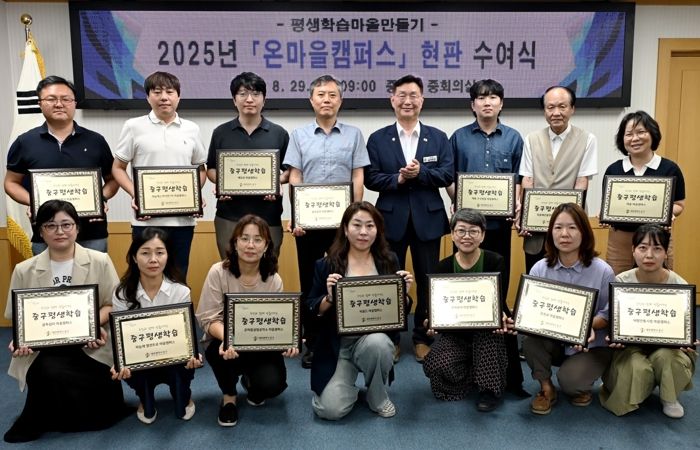 한방통신사 신태공 기자 | 대전 중구는 지난 29일에‘평생학습마을만들기 2025년 온마을캠퍼스 현판 수여’행사를 개최했다고 밝혔다.