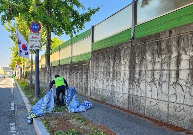 유성구는 지난 4월부터 6월까지 불법광고물 수거단을 운영해 현수막(족자형 포함) 5,853건, 벽보(일반전단 포함) 1만 7,332건, 명함형 전단 3만 5,029건 등 5만 8,000여 건의 불법광고물을 정비했다.