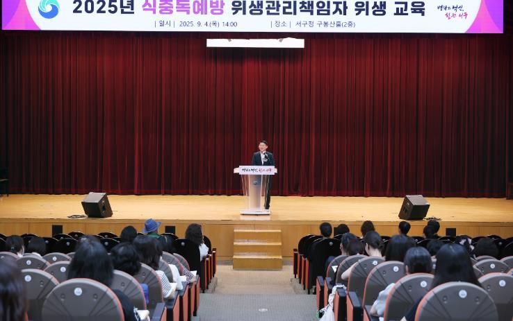 한방통신사 신태공 기자 | 대전 서구는 구청 구봉산홀에서 관내 집단급식소 영양사와 급식 종사자 400여 명을 대상으로 식중독 예방 특별 위생 교육을 진행했다고 5일 밝혔다.