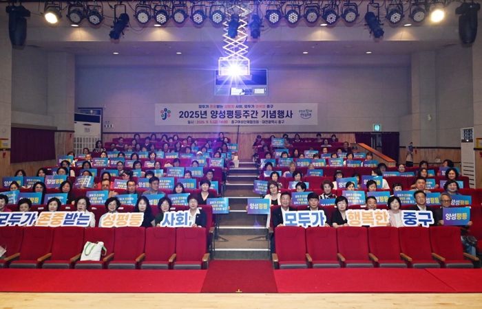 김제선 중구청장은 “양성평등은 사회 통합과 지역 발전의 핵심 가치”라며, “구민 모두가 성별에 관계없이 동등한 기회와 권리를 보장받고, 안전한 환경에서 행복한 삶을 누릴 수 있는 따뜻한 중구를 만들어 가겠다”라고 말했다.