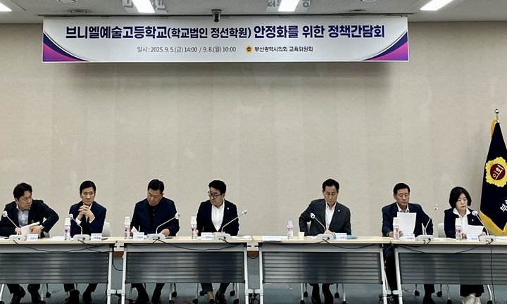 한방통신사 신유철기자 기자 | 부산광역시의회 교육위원회는 9월 5일과 8일 양일간 시의회 대회의실에서 브니엘예술고등학교(학교법인 정선학원) 안정화 방안을 논의하기 위한 정책간담회를 개최했다.
