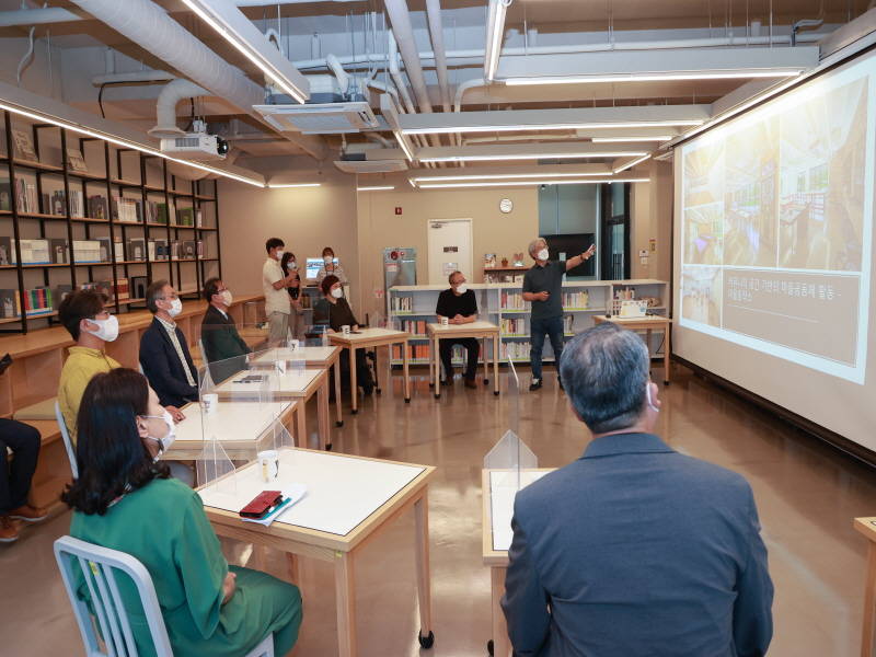 간담회를 마친 후 조 시장 및 관계자들은 입주민들이 공동으로 운영하고 있는 돌봄 센터 및 카페, 공동 빨래터 등 시설을 둘러보고 이용 중인 주민들과 인사를 나누며 주민들이 직접 만든 작품 전시를 관람했다.