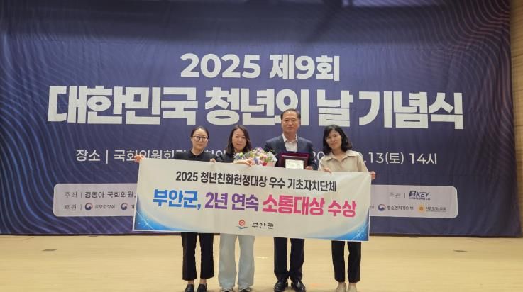 한방통신사 김성의 기자 | 부안군이 국회사무처 소관 사단법인 ‘청년과미래’가 주관하는 2025년 청년친화헌정대상에서 ‘소통대상’을 수상했다.