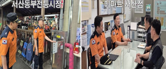 한방통신사 신태공 기자 | 서산소방서는 15일, 다가오는 추석 명절을 앞두고 시민들이 많이 찾는 서산동부전통시장과 이마트 서산점을 직접 방문해 현지지도를 실시했다고 밝혔다.