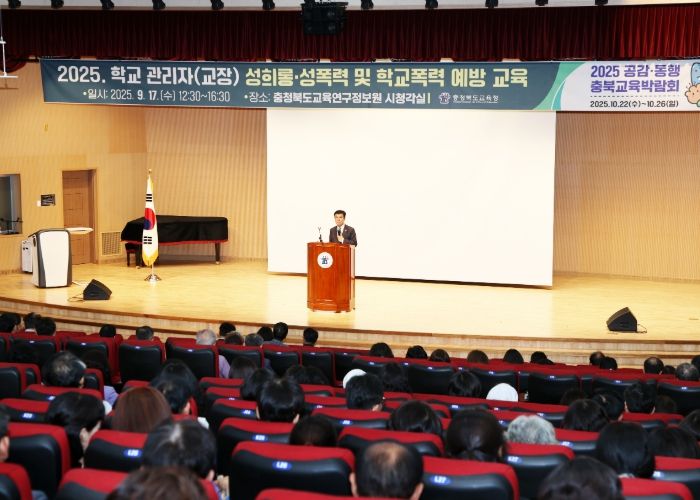 한방통신사 권영분기자 기자 | 충청북도교육청은 17일, 안전하고 존중하는 학교문화를 조성하기 위해 도내 각급 학교의 관리자(교장) 447명을 대상으로 성희롱‧성폭력 및 학교폭력 예방 교육을 실시했다.