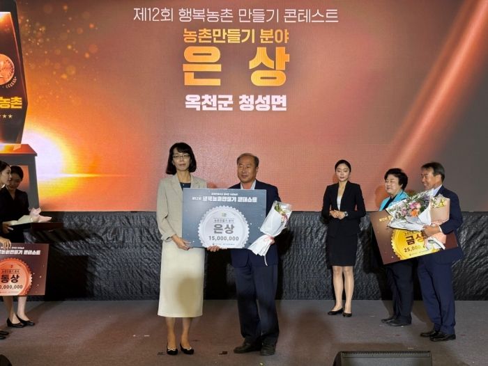 한방통신사 권영분기자 기자 | 옥천군 청성면이 지난 17일 과천 한국마사회 경마공원에서 열린 농림축산식품부 주최 ‘제12회 행복농촌만들기 콘테스트’에서 농촌만들기 분야 장관상(은상)을 차지해 상금 15,000만 원을 받았다.