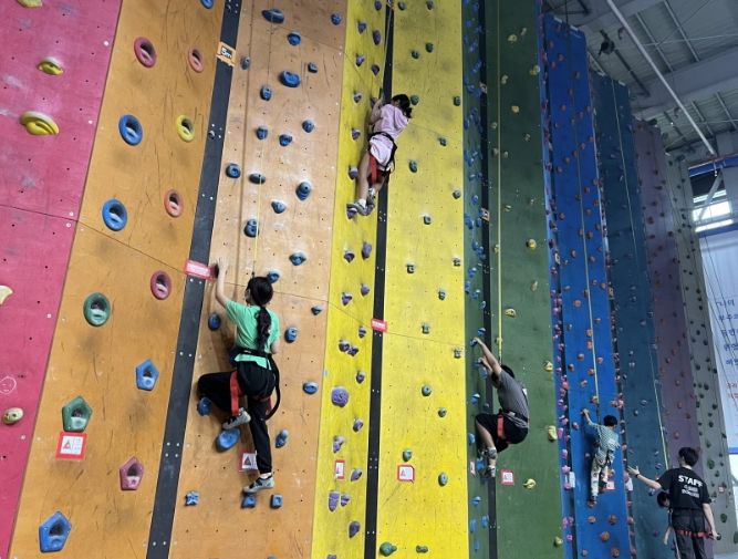 이날 ‘디스커버리 클라이밍 클라임스퀘어(ICN)’에서 진행된 클라이밍 체험은 ‘클라이밍 안전교육’과 ‘10미터 수직 등반(이지클라임)’등 클라이밍 기초를 배울 수 있는 수업으로 구성됐다.