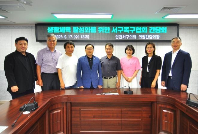 한방통신사 신유철기자 기자 | 인천 서구의회 김춘수 의원(더불어민주당, 연희 검암경서동)은 지난 17일 서구체육회 족구협회[연맹] 회장단과 만나 생활체육 활성화를 위한 간담회를 가졌다고 밝혔다.