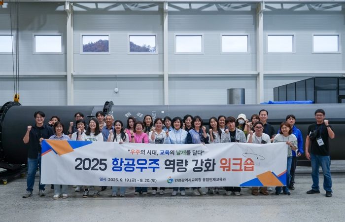 한방통신사 신유철기자 기자 | 인천광역시교육청은 9월 19일부터 20일까지 관내 중등 교사 25명을 대상으로 사천과 대전에서 ‘2025 항공우주 교사 역량강화 워크숍’을 개최했다고 밝혔다.