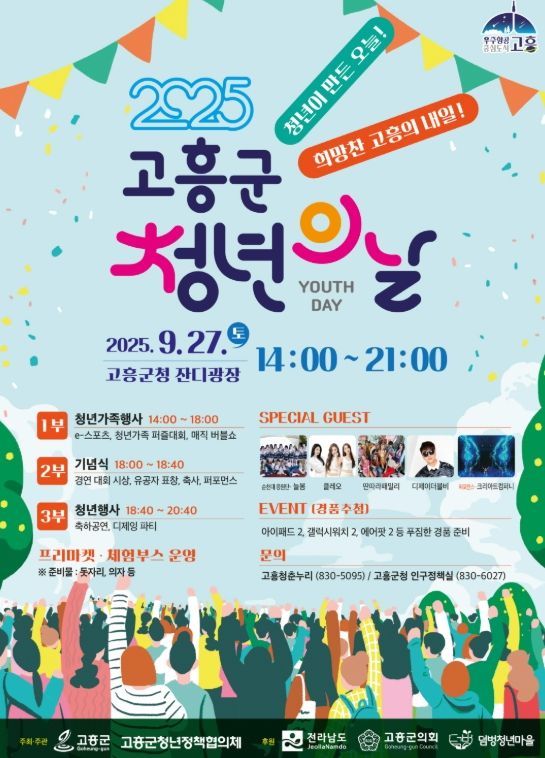 한방통신사 신다은기자 기자 | 고흥군은 오는 9월 27일 고흥군청 잔디광장에서 ‘2025년 고흥군 청년의 날’ 행사를 개최한다고 밝혔다.