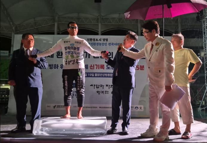 한방통신사 신다은기자 기자 | 광양시 홍보대사이자 국제환경운동가 ‘맨발의 사나이’ 조승환이 지난 9월 19일 (사)한국친환경농업협회가 주최한 2025 한국친환경농업인전국대회 개막식에 초청받아 세계신기록을 세웠다.