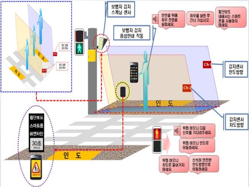 ‘보행자 안전 스마트 음성안내 보조장치 설치’사업은 횡단보도를 이용하는 시민들에게 음성안내를 지원한다. 더불어 ‘스마트폰 차단 앱 설치’횡단보도 주변에서는 스마트폰 사용을 자제하도록 유도해 어린이의 안전성을 확보하는 효과도 있다.