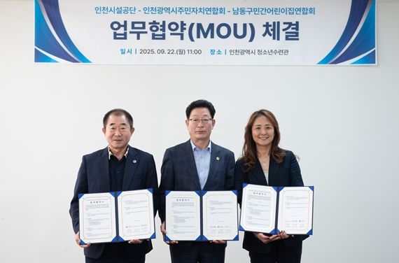 한방통신사 신유철기자 기자 | 인천시설공단 인천청소년수련관은 22일 인천광역시주민자치연합회, 남동구민간어린이집연합회와 함께 청소년의 문화·예술 활동 기회 확대와 지역 내 공연장 대관장소 부족 문제 해소를 위한 업무협약을 체결했다.