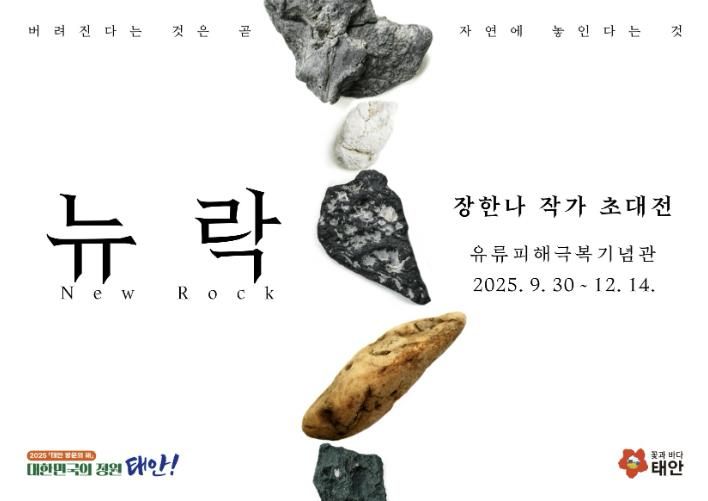 태안군은 9월 30일부터 12월 14일까지 만리포 해수욕장 인근에 위치한 유류피해극복기념관(소원면 천리포1길 120)에서 장한나 작가 초대전 ‘뉴락(New Rock)’을 개최한다고 밝히고 군민 및 관광객들의 많은 관심을 당부했다.