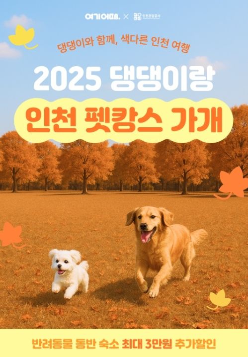 한방통신사 신유철기자 기자 | 인천관광공사는 반려동물 동반 여행 활성화를 위해 대한민국 대표 종합 여행·여가 플랫폼 “여기어때”와 함께 '2025 댕댕이랑 인천 펫캉스 가개' 온라인 숙박 할인 기획전을 9월 24일부터 11월 30일까지 개최한다고 밝혔다. 이번 기획전은 반려동물과 함께하는 여행 수요가 꾸준히 증가하는 가운데, 인천을 대표적인 반려동물 친화 관광도시로 널리 알리기 위해 마련됐다.