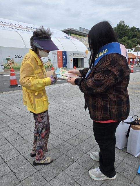 이번 홍보는 유동 인구가 많은 축제 현장에서 도로명주소 사용의 효율성과 중요성을 알리고 군민과 관광객의 일상생활 속 도로명주소 활용도를 높이기 위해 추진됐다.