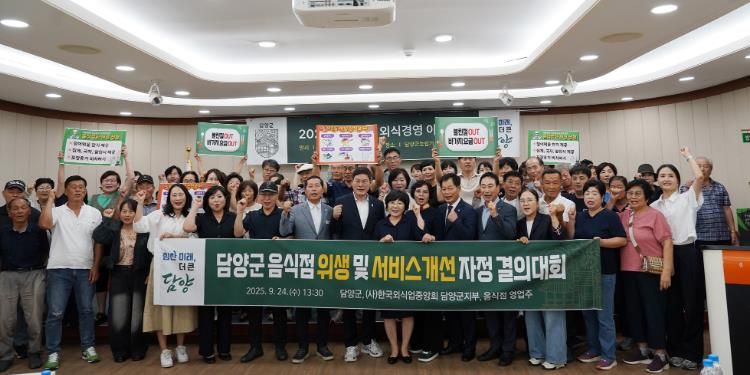 한방통신사 신다은기자 기자 | 담양군은 24일 농업기술센터 강당에서 외식업 종사자 100여 명과 함께 ‘친절 실천 및 서비스 개선 자정 결의대회’를 열고 불친절·비위생 문제 예방과 관광 이미지 개선을 다짐했다.