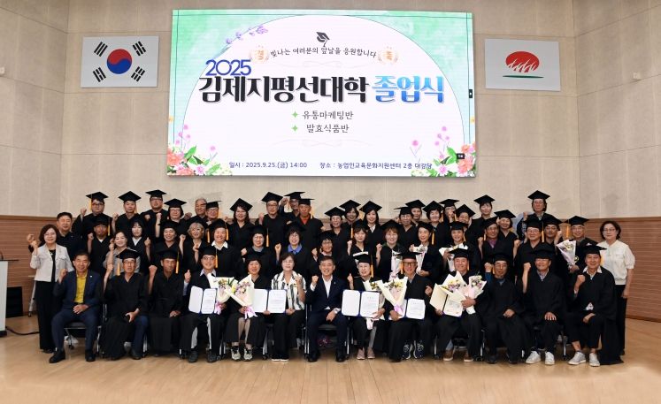한방통신사 김성의 기자 | 김제시는 지난 25일 농업인교육문화지원센터에서 '2025학년도 김제시지평선대학 졸업식'을 80여명이 참여한 가운데 개최했다고 밝혔다