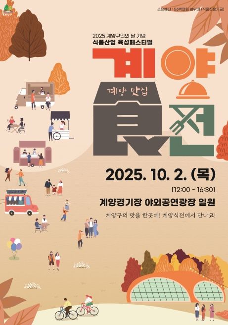 한방통신사 신유철기자 기자 | 인천광역시 계양구는 제31회 구민의 날을 맞아 행사를 오는 10월 2일 12시부터 계양경기장 야외공연광장에서 식품산업육성 페스티벌 ‘계양食(식)전’ 행사를 개최한다.