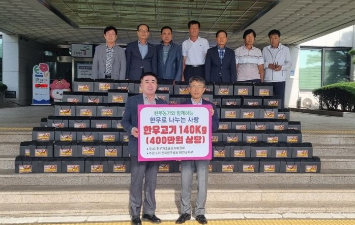 군에 따르면, 전국한우협회 태안군지부는 29일 군청 현관에서 이주영 부군수와 장대옥 지부장 등이 참석한 가운데 기탁식을 갖고 국거리용 한우 140박스(400만 원 상당)를 군에 기탁했다.