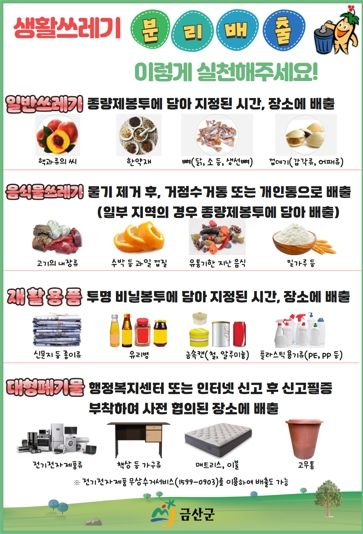 자세한 수거일은 금산군청 환경위생과나 읍·면행정복지센터에 문의하면 된다.