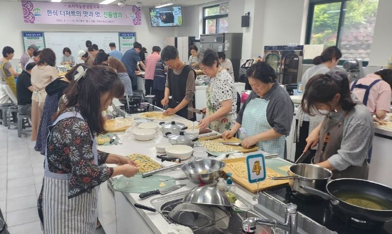 교육은 ▲팥수수부꾸미 ▲매작과·타래과 ▲오방다식 ▲올리브정과 ▲개성약과 등 다채로운 메뉴로 구성됐으며, 이론과 실습을 통해 한국 고유의 디저트 제조 기술을 익히고 지역 농산물을 활용한 건강한 식생활 실천 방법을 배우는데 중점을 두었다.
