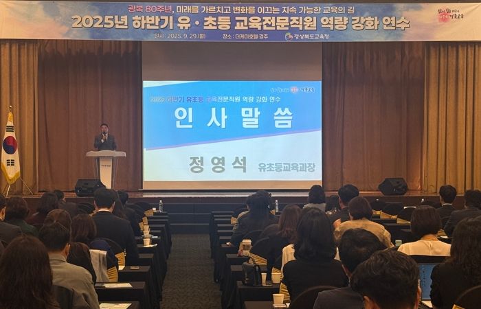 한방통신사 신유철기자 기자 | 경북교육청은 29일 경주시에 있는 더케이호텔경주에서 본청과 직속기관․교육지원청 소속 유․초등 교육전문직원 160여 명이 참석한 가운데 ‘2025 하반기 유․초등 교육전문직원 역량 강화 연수’를 개최했다고 밝혔다.