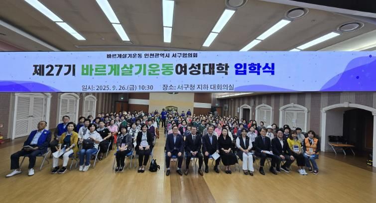 한방통신사 신유철기자 기자 | 바르게살기운동 인천 서구협의회는 9월 27일 서구청 대회의실에서 ‘제27기 바르게살기운동 서구여성대학 입학식’을 개최했다.