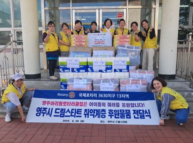정경숙 아동청소년과장은 “지역의 아동을 위한 나눔 활동에 감사드린다”며 “후원품을 필요한 가정에 전달하여 영주아리랑로타리클럽의 따뜻한 마음을 잘 전하도록 하겠다”고 말했다.