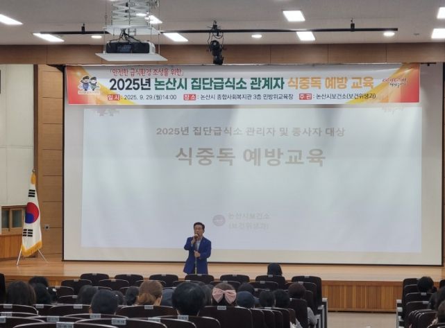 한방통신사 신태공 기자 | 논산시는 29일 종합사회복지관에서 학교·복지시설·산업체 등 집단급식소 관계자 200여 명을 대상으로 식중독 예방 교육을 실시했다.