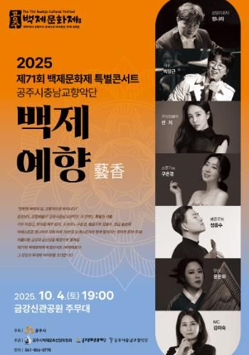 한방통신사 신태공 기자 | 공주시충남교향악단은 제71회 백제문화제를 맞아 오는 10월 4일 저녁 7시, 공주 금강신관공원 주무대에서 특별콘서트 ‘백제 예향’을 개최한다고 밝혔다.