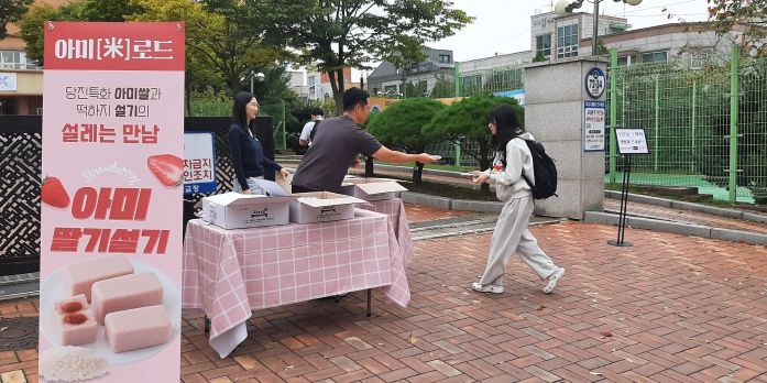 아미딸기설기는 아미쌀과 관내 떡 판매업체 ‘떡하지’의 설기를 협업·개발한 간식 또는 한 끼 식사 대용이며, 당진시에서만 맛볼 수 있다. 이날 아미딸기설기 맛을 본 학생들의 반응은 긍정적이었다.