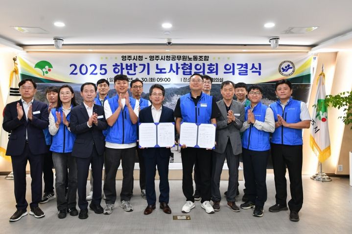 한방통신사 신유철기자 기자 | 영주시는 지난 30일 시청 제1회의실에서 영주시청공무원노동조합(위원장 이연직)과 함께 2025 하반기 노사협의회 의결을 진행했다고 밝혔다.